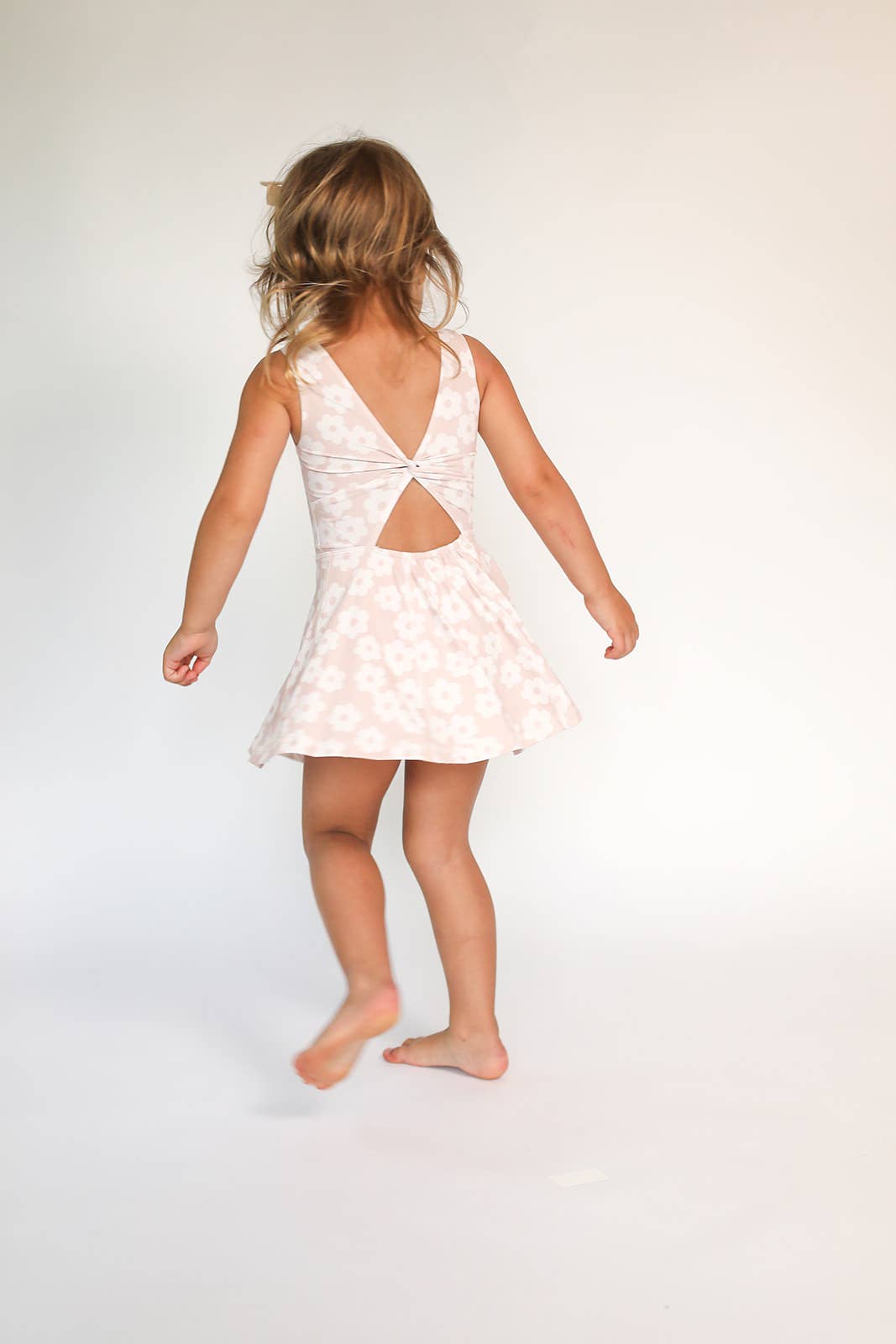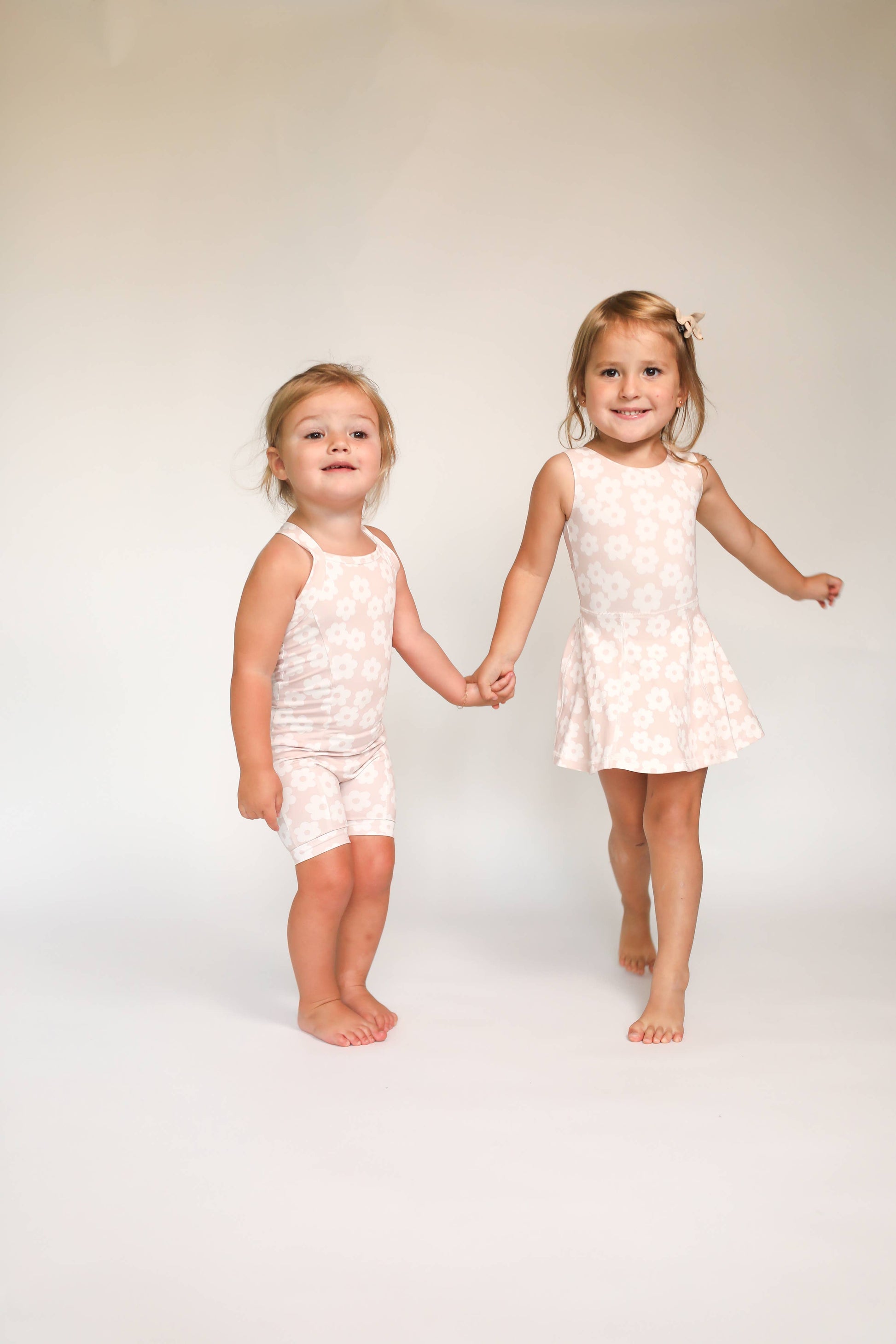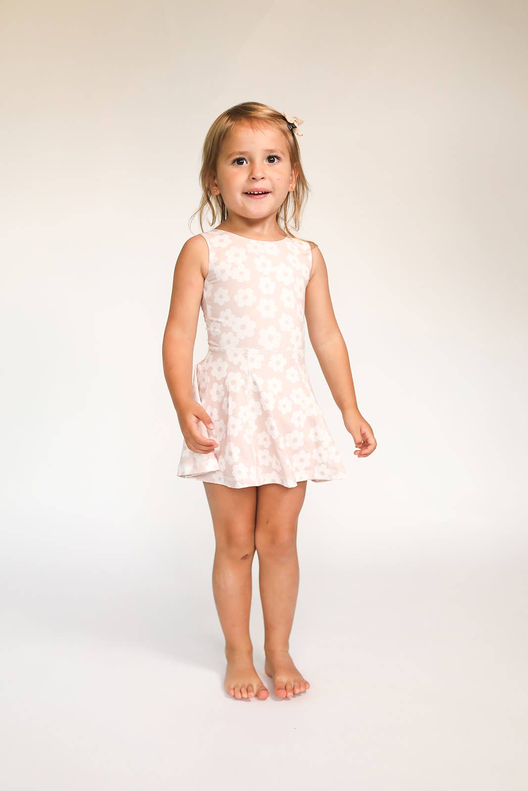 Elevate her active style with our Daisy Dress - athletic wear for dance, gym class, and beyond! Crafted from eco-friendly Cotton/Spandex blend, this versatile dress features: