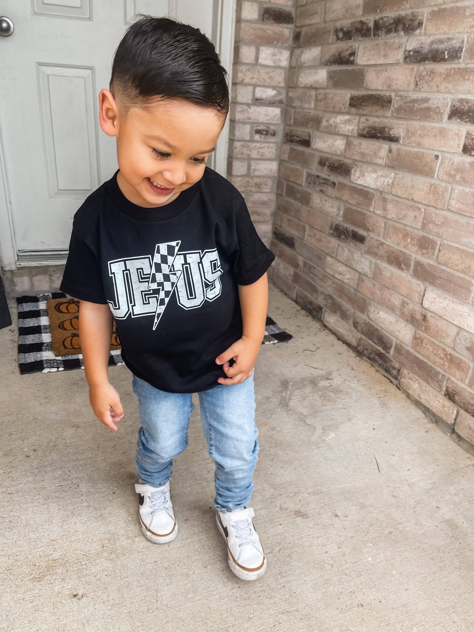 Introducing the "Divine Power" Children's Tee: Jesus with Lightning Bolt! This striking black tee features Jesus with a powerful lightning bolt, symbolizing His divine authority. With style and comfort, it's a perfect gift to inspire your child's faith journey. Let your child proudly wear their faith and embrace the supernatural power of Jesus with this electrifying tee.