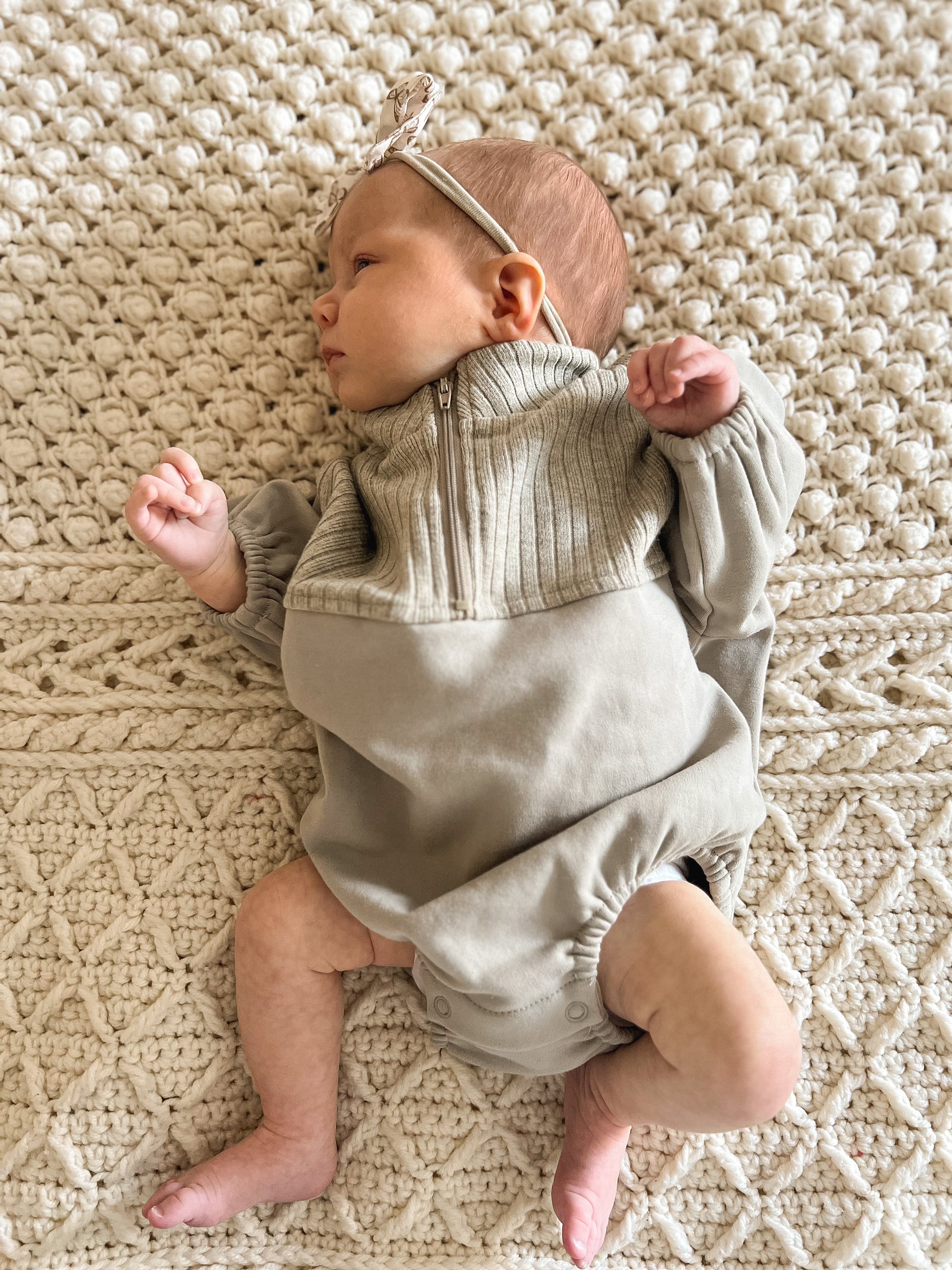 The softest fabric lined with a thin fleece to keep your babies warm! Quarter zip details!